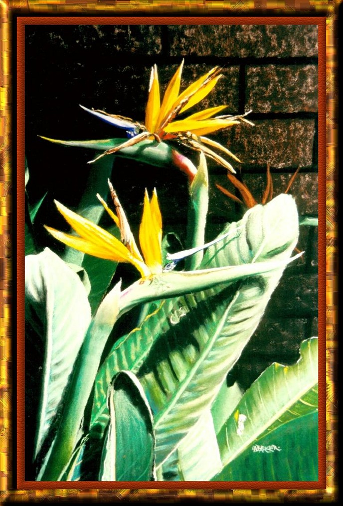 'A Flash Here And There' - Bird of Paradise Flower Pastel on Paper 39cm x 60cm / 15.6in x 24in Unframed (shown framed for display purposes) E-mail for price