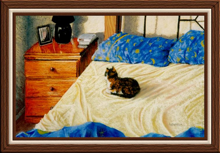 'Late Morning Wake Up' Pastel on Paper 72cm x 58cm / 28.8in x 23.2in Cream/Coffee Double Mat - Brown Timber Frame E-mail for price