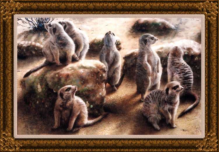 'Neighbourhood Watch' - Meercats Oil on canvas 105cm x 75cm / 42in x 30in Framed E-mail for price
