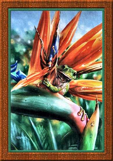 'From Behind The Rainbow' - Tree Frog with Bird of Paradise Flower Pastel on Colourfix Paper 50cm x 60cm / 20in x 24in Framed