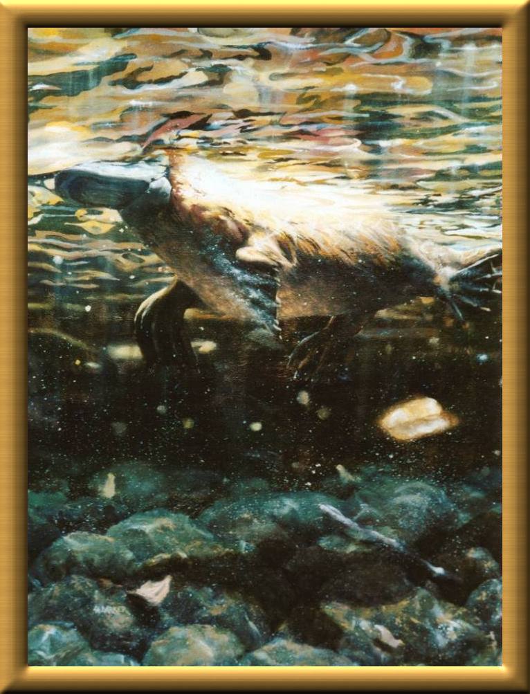 'The Midday Swim' - Platypus Oil 70cm x 84.5cm / 28in x 33.8in Frosted Gold Frame